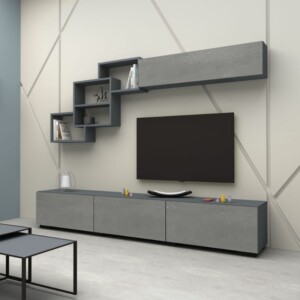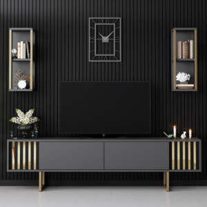 Σύνθεση τηλεόρασης Rosaline Megapap χρώμα ανθρακί – sepet oak 233×31,3×196,8εκ.