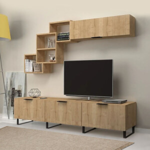 Σύνθετο σαλονιού Wendy pakoworld σε oak-μαύρη απόχρωση 195.1×37.3×219.1εκ