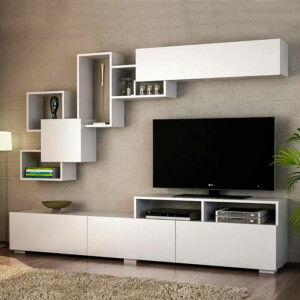 Σύνθεση τηλεόρασης Rosaline Megapap χρώμα λευκό – sepet oak 233×31,3×196,8εκ.