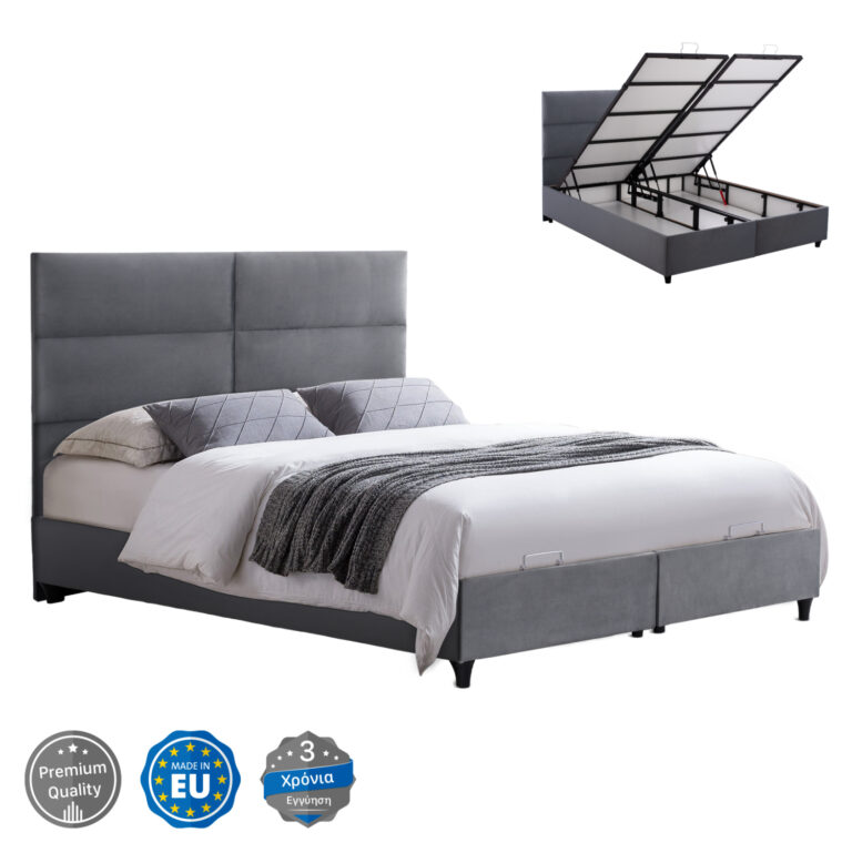 ΚΡΕΒΑΤΙ MILO ΜΕ ΑΠΟΘΗΚΕΥΤΙΚΟ ΑΠΟ ΓΚΡΙ ΒΕΛΟΥΔΟ HM622.10 ΓΙΑ ΣΤΡΩΜΑ 160×200 εκ.