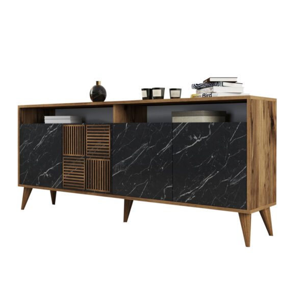 ΜΠΟΥΦΕΣ ΜΕΛΑΜΙΝΗΣ HM9045.01 NATURAL WOOD – ΜΑΥΡΟ ΜΑΡΜΑΡΟ 180x41x77,8Y εκ.
