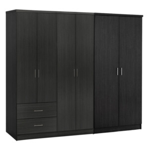 Ντουλάπα ρούχων Bekerk pakoworld τετράφυλλη μαύρο-oak μελαμίνης 200×61.5×190.5εκ
