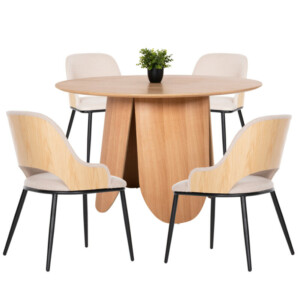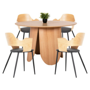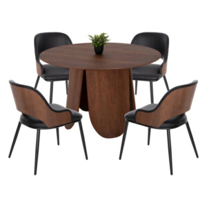 Τραπεζαρία Balou-Caron σετ 5τεμ pakoworld MDF και pp σε μαύρη-φυσική απόχρωση Φ120×73εκ