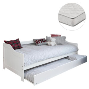 ΚΡΕΒΑΤΙ ΚΑΝΑΠΕΣ ΜΕ ΣΥΡΟΜΕΝΟ TRADDY HM21313 ΞΥΛΟ ΠΕΥΚΟΥ ΛΕΥΚΟ–ΜΕ 2 ΣΤΡΩΜΑΤΑ 90×190εκ