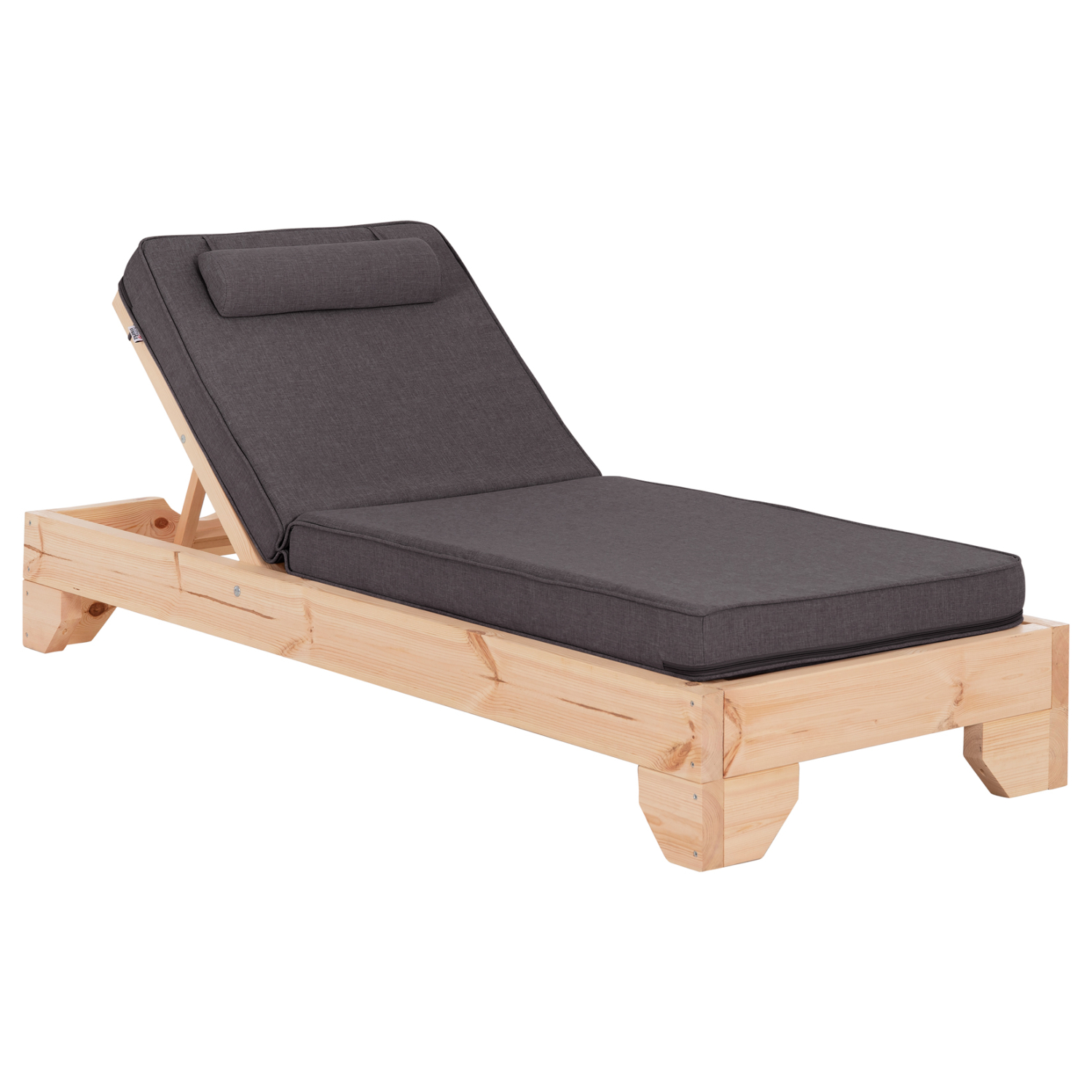 -Το μαξιλάρι που συνοδεύει την ξαπλώστρα είναι από αφρό μέτριας σκληρότητας ενώ το κάλυμμα είναι από ύφασμα OLEFIN σε ΓΚΡΙ χρώμα. Δένεται στην ξαπλώστρα με κορδόνια.