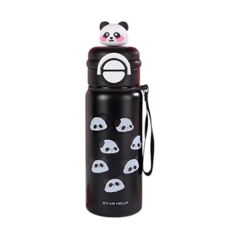 Παιδικό παγούρι-θερμός Panda με καλαμάκι – 500ml – 722344 – Black