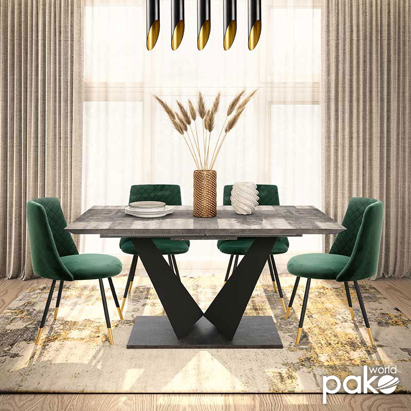 Τραπέζι Gordon pakoworld επεκτεινόμενο γκρι cement- πόδι μαύρο μέταλλο 160-200x90x75εκ