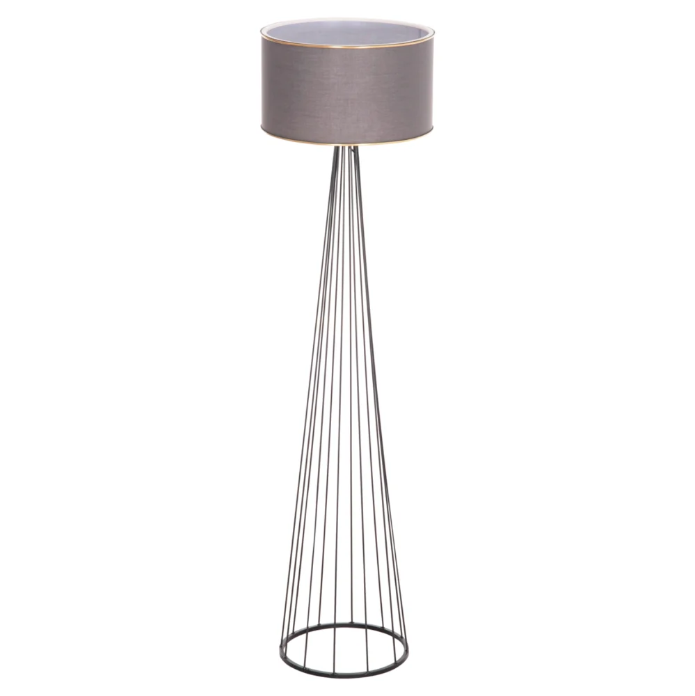 Φωτιστικό δαπέδου με επιχρυσωμένη μεταλλική κυλινδρική κολώνα.