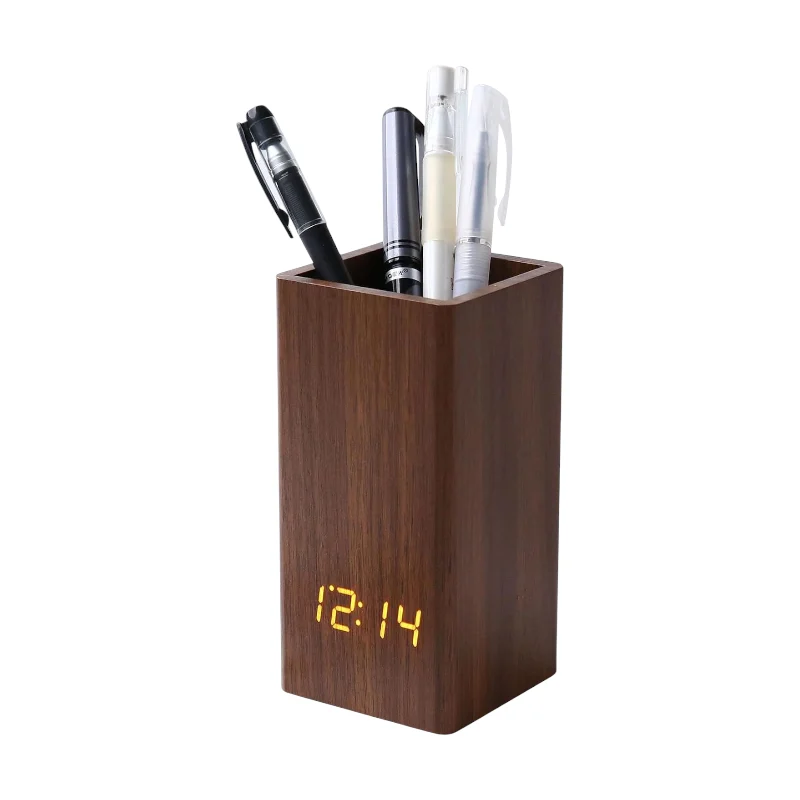Ψηφιακό ρολόι–Ξυπνητήρι LED & μολυβοθήκη, σε ιδιαίτερο σχεδιασμό με εφέ ξύλου. Πρακτικό μέγεθος που μπορεί να τοποθετηθεί παντού και να προσδώσει σύγχρονη νότα στο χώρο σας.