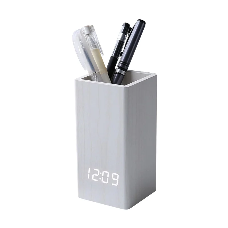 Ψηφιακό ρολόι–Ξυπνητήρι LED & μολυβοθήκη, σε ιδιαίτερο σχεδιασμό με εφέ ξύλου. Πρακτικό μέγεθος που μπορεί να τοποθετηθεί παντού και να προσδώσει σύγχρονη νότα στο χώρο σας.