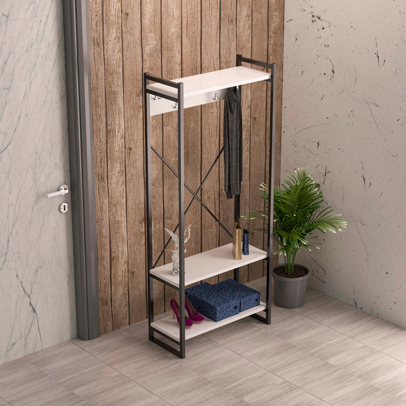 Έπιπλο εισόδου με κρεμάστρα Baker pakoworld μαύρο μέταλλο και μελαμίνη σε λευκή απόχρωση 90x34x180εκ