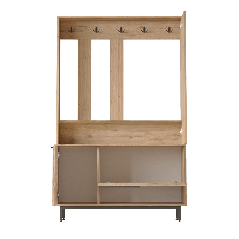 * Διαθέτει δύο κλειστούς αποθηκευτικούς χώρους, ένα ράφι στο κάτω μέρος,κρεμάστρες και καθρέπτη. Διαθέτει ό,τι ακριβώς είναι απαραίτητο για τον χώρο υποδοχής κάθε σπιτού.