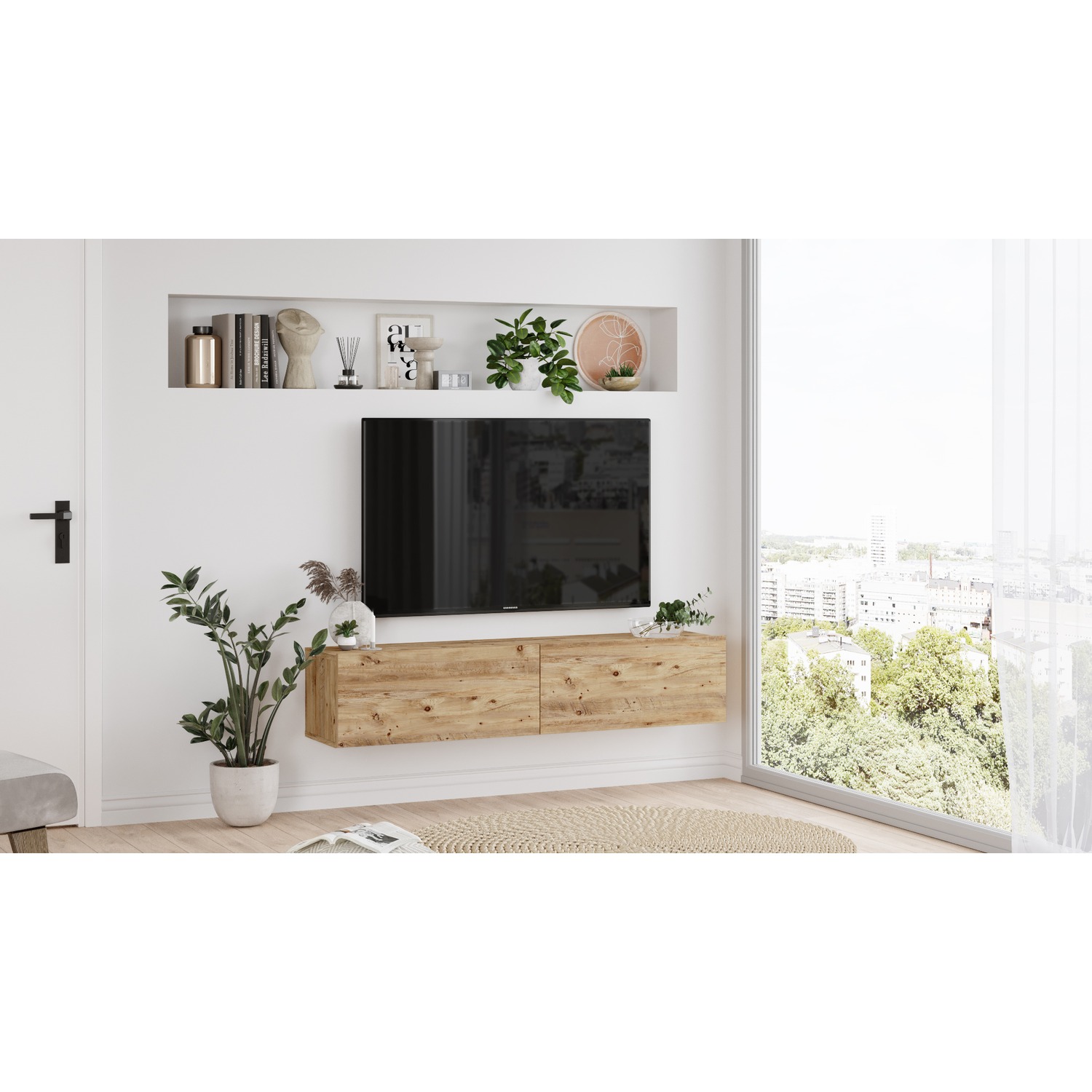 Έπιπλο Τηλεόρασης ArteLibre ANDROS Φυσικό/Ανθρακί Μοριοσανίδα/Μελαμίνη 140x40x50cm