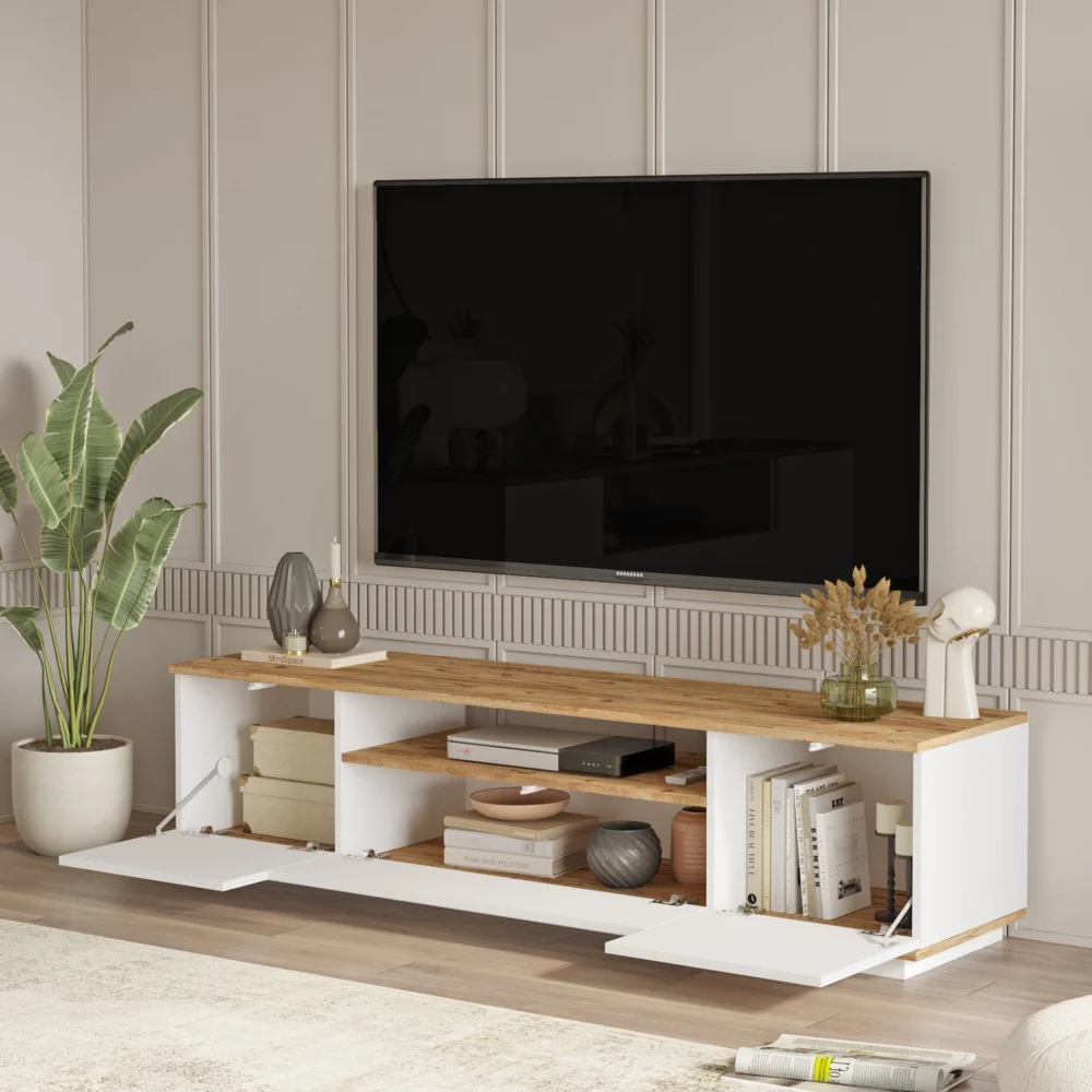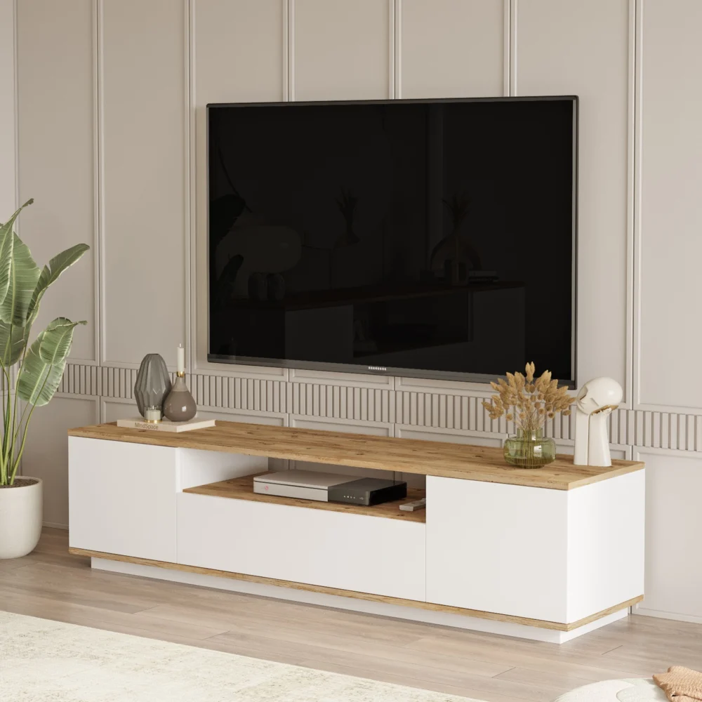 Έπιπλο Τηλεόρασης ArteLibre CHILHAM Φυσικό/Λευκό Μοριοσανίδα 180×44.5×44.6cm