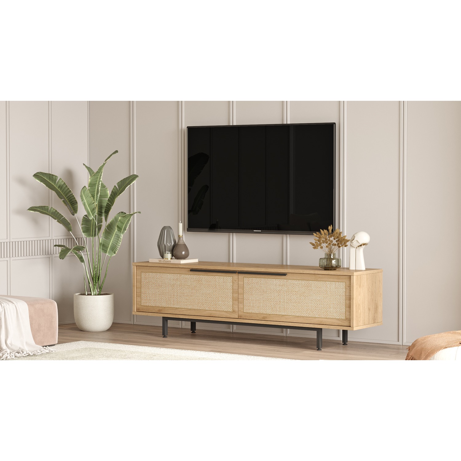 Έπιπλο Τηλεόρασης ArteLibre CORNWALL Φυσικό Μοριοσανίδα/Μέταλλο 160×35.5×45.1cm