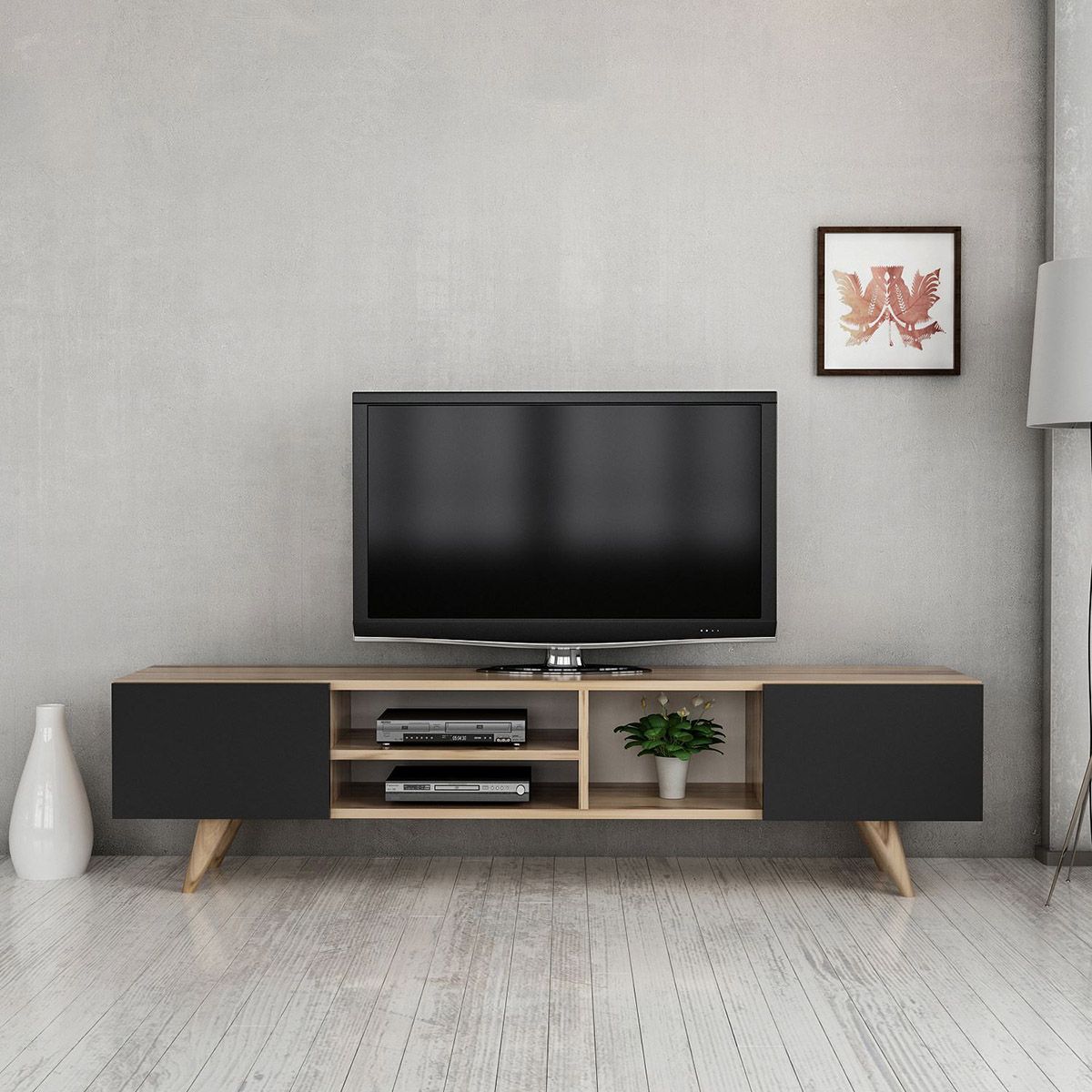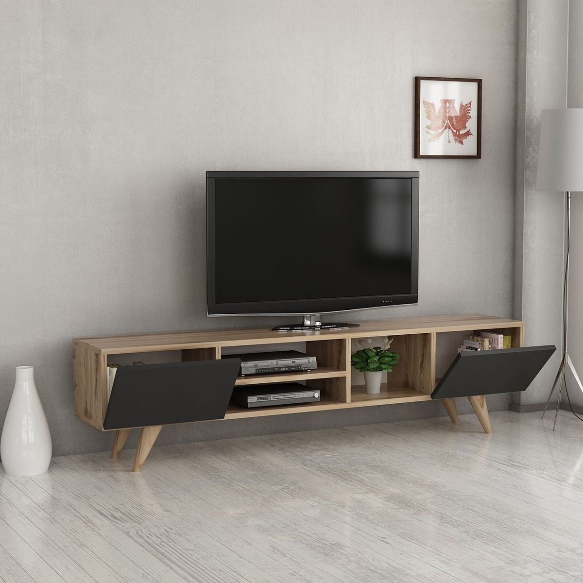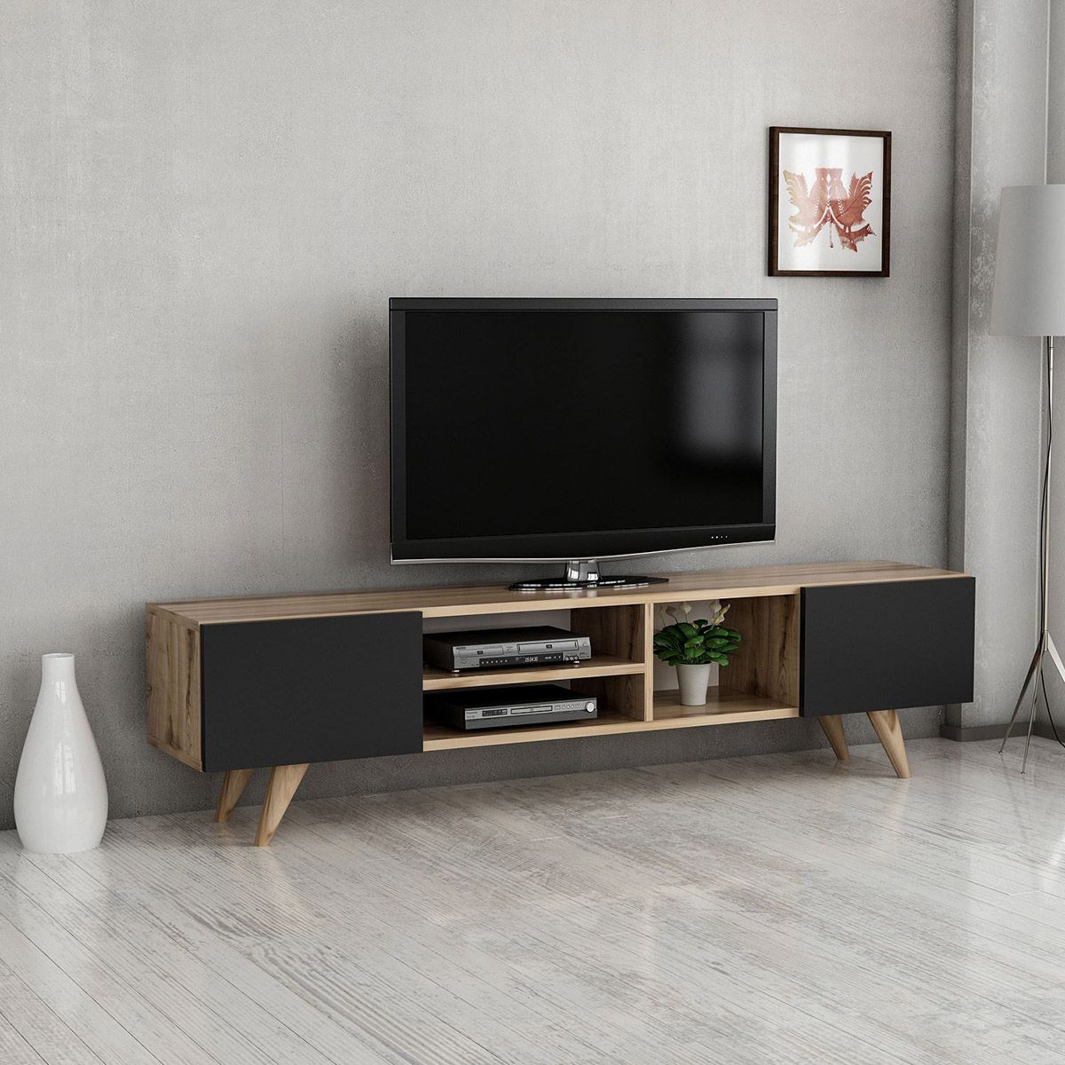 Σύνθετο έπιπλο τηλεόρασης SKOPELOS Καρυδιά/Μαύρο 160x30x40cm