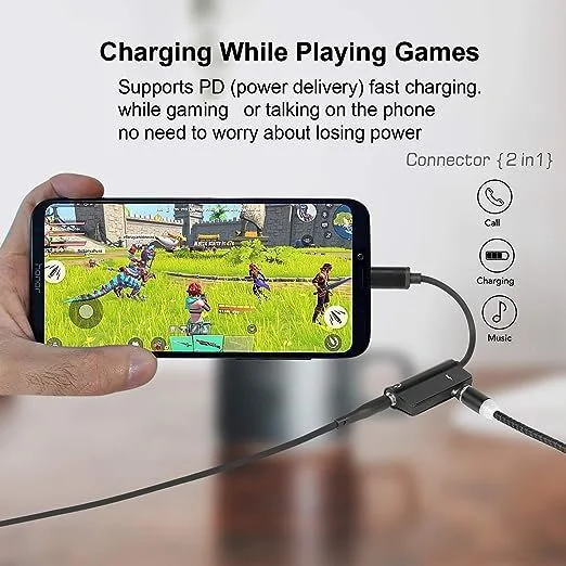 Αντάπτορας που συνδέει έναν αρσενικό ακροδέκτη Lightning με μια θηλυκή θύρα 3.5mm και μια Lightning.