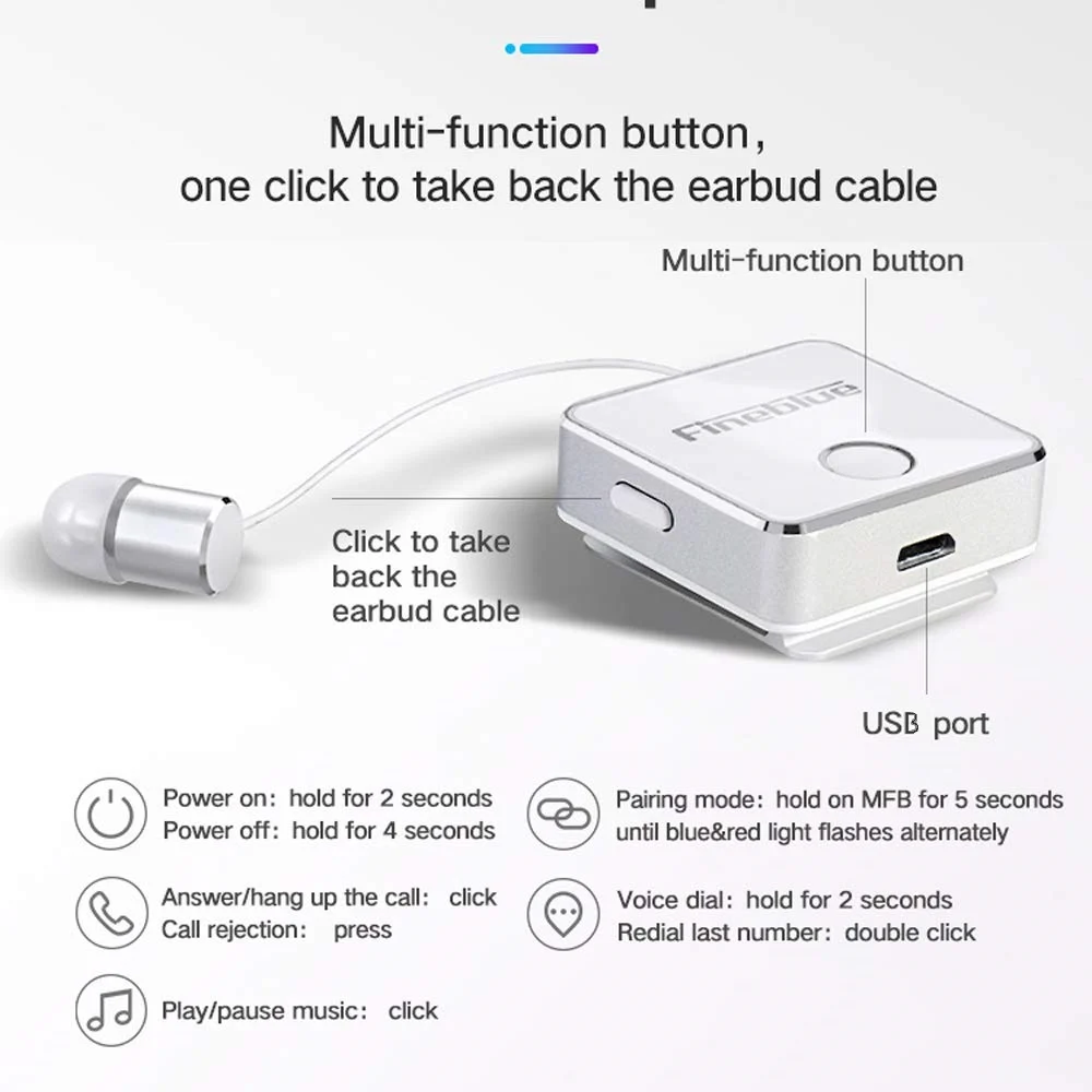 Ακουστικό Handsfree Bluetooth Fineblue με τεχνολογία Noise cancellation για ελαχιστοποίηση θορύβων και απόλυτη ηχομόνωση.