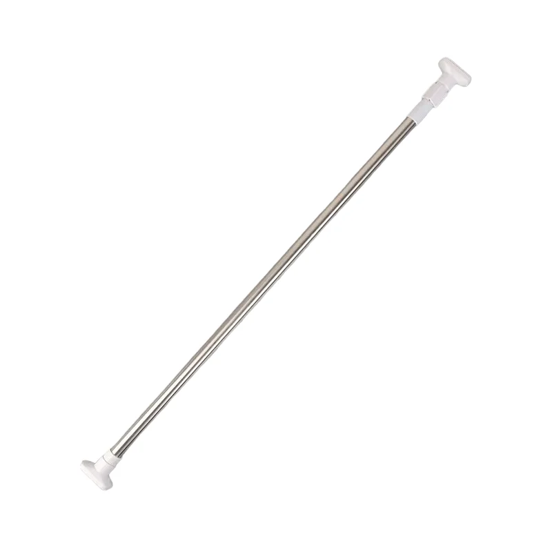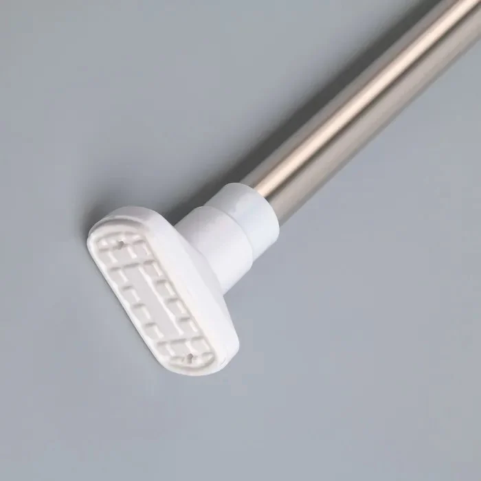 Κουρτινόξυλο ντουζιέρας-μπάνιου, αλουμινίου. Στιβαρή κατασκευή υψηλής ανθεκτικότητας που δεν σκουριάζει. Πτυσσόμενο, με ρυθμιζόμενο μήκος 110-200cm, με ενισχυμένο εσωτερικό ελατήριο. Διαθέτει ειδικά αντιολισθητικά λάστιχα–βεντούζες στις πλαϊνές κεφαλές για σταθερή στήριξη σε τοίχο, πλακάκι ή μάρμαρο, χωρίς να προκαλεί αλλοιώσεις. *Δεν περιλαμβάνονται κρίκοι κουρτίνας.