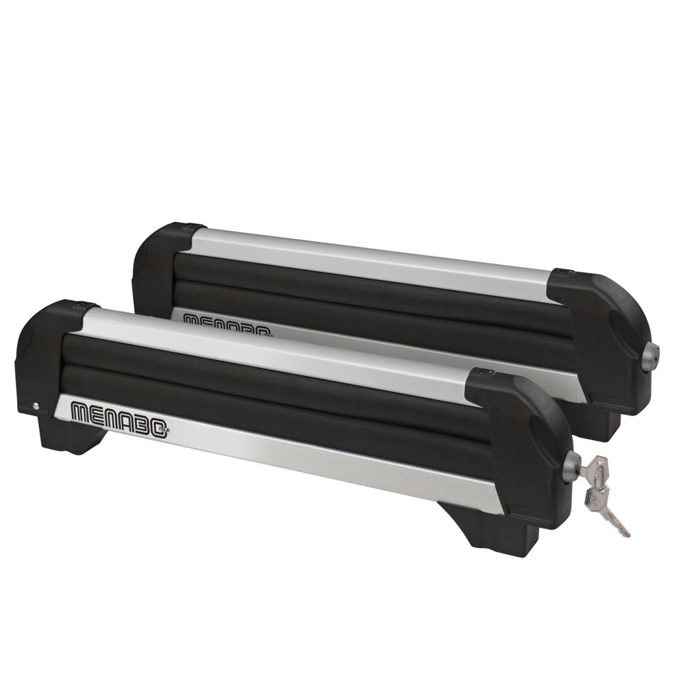 Η βάση οροφής ICEBERG από την MENABO, 100% ιταλικής προέλευσης και κατασκευής, ιδανική για τη μεταφορά έως και 4 ζευγαριών σκι ή 2 snowboard σανίδων, μπορεί να τοποθετηθεί σε όλων των ειδών μπάρες οροφής, πληροί όλες τις προδιαγραφές υψηλής ασφάλειας και είναι κατάλληλη για να έχετε τον χειμερινό εξοπλισμό σας πάντα μαζί σε οποιαδήποτε απόδραση.