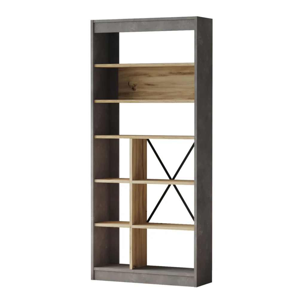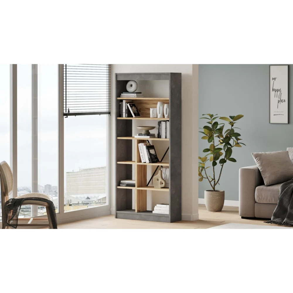 Βιβλιοθήκη ArteLibre BELVEDERE Γκρι Με Εφέ Τσιμέντο/Φυσικό Μοριοσανίδα 75.6x25x170cm