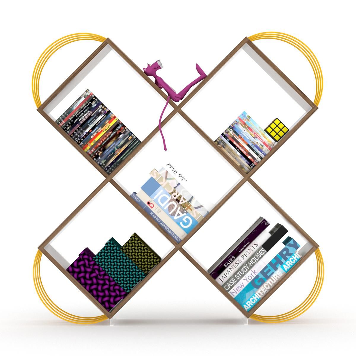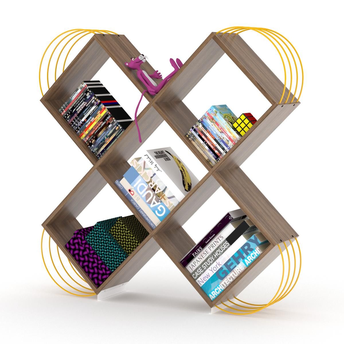 Βιβλιοθήκη ArteLibre CASE Καρυδί/Κίτρινο 120x25x120cm