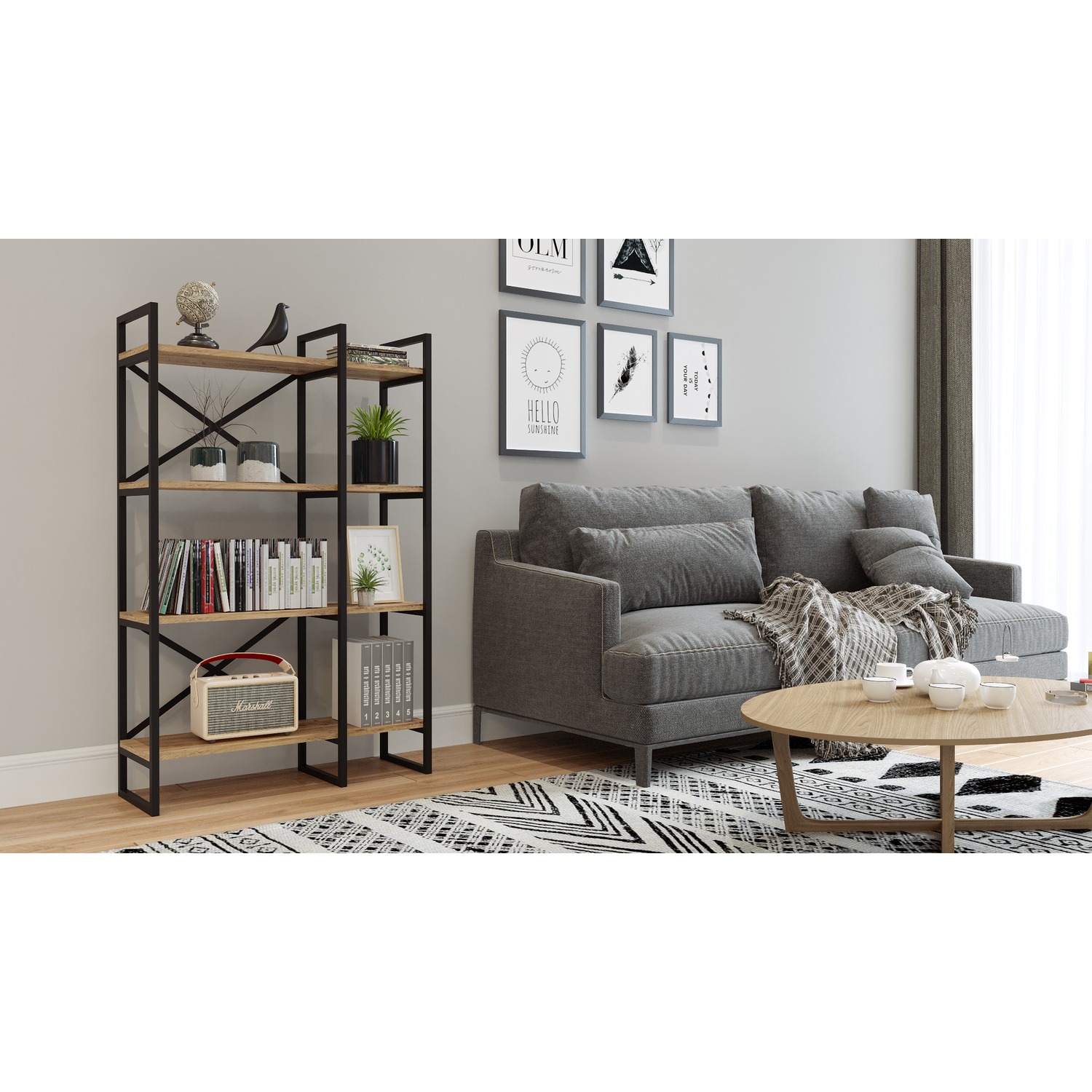 Βιβλιοθήκη ArteLibre LOTHIAN Πεύκο/Μαύρο Μοριοσανίδα/Μέταλλο 87.5x30x138cm