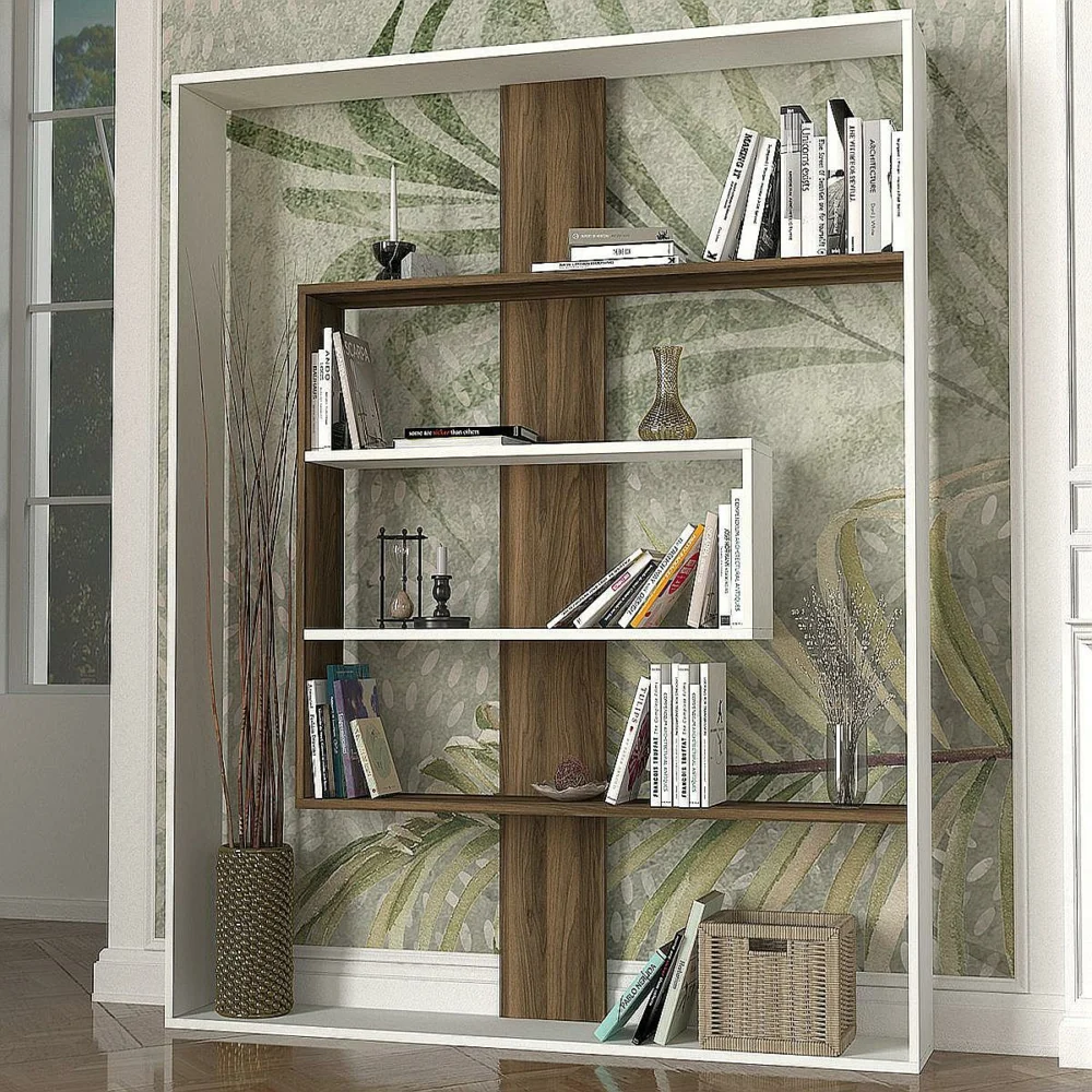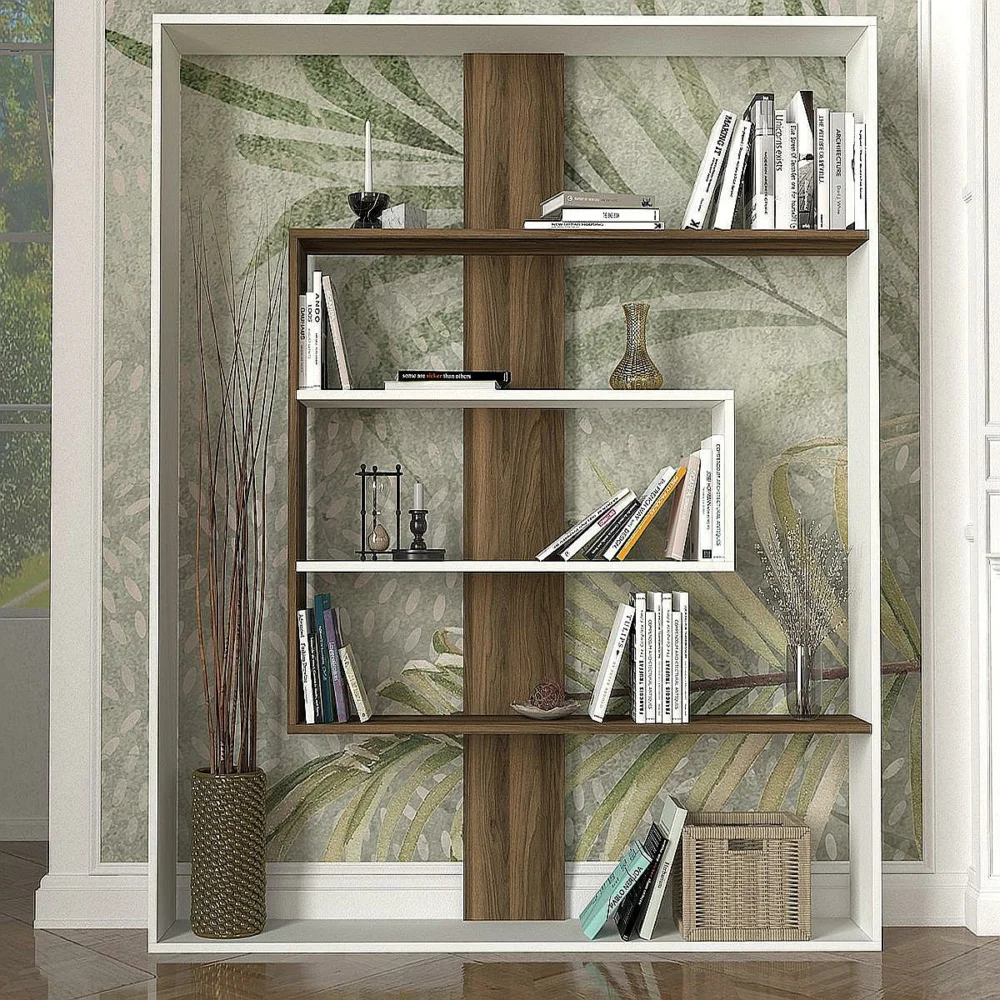 Βιβλιοθήκη ArteLibre POIROT Λευκό/Καρυδί Μοριοσανίδα/Μελαμίνη 150x22x175cm