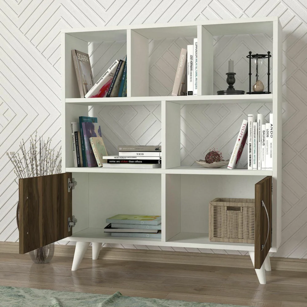 Βιβλιοθήκη ArteLibre Symi Λευκό-Σκούρο Καφέ 90x22x105cm