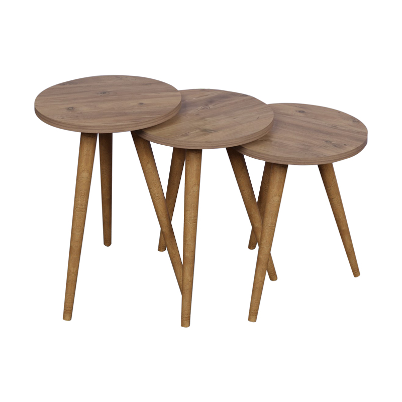 Βοηθητικά τραπέζια Perjene pakoworld σετ 3τεμ μελαμίνη και ξύλο σε φυσική απόχρωση