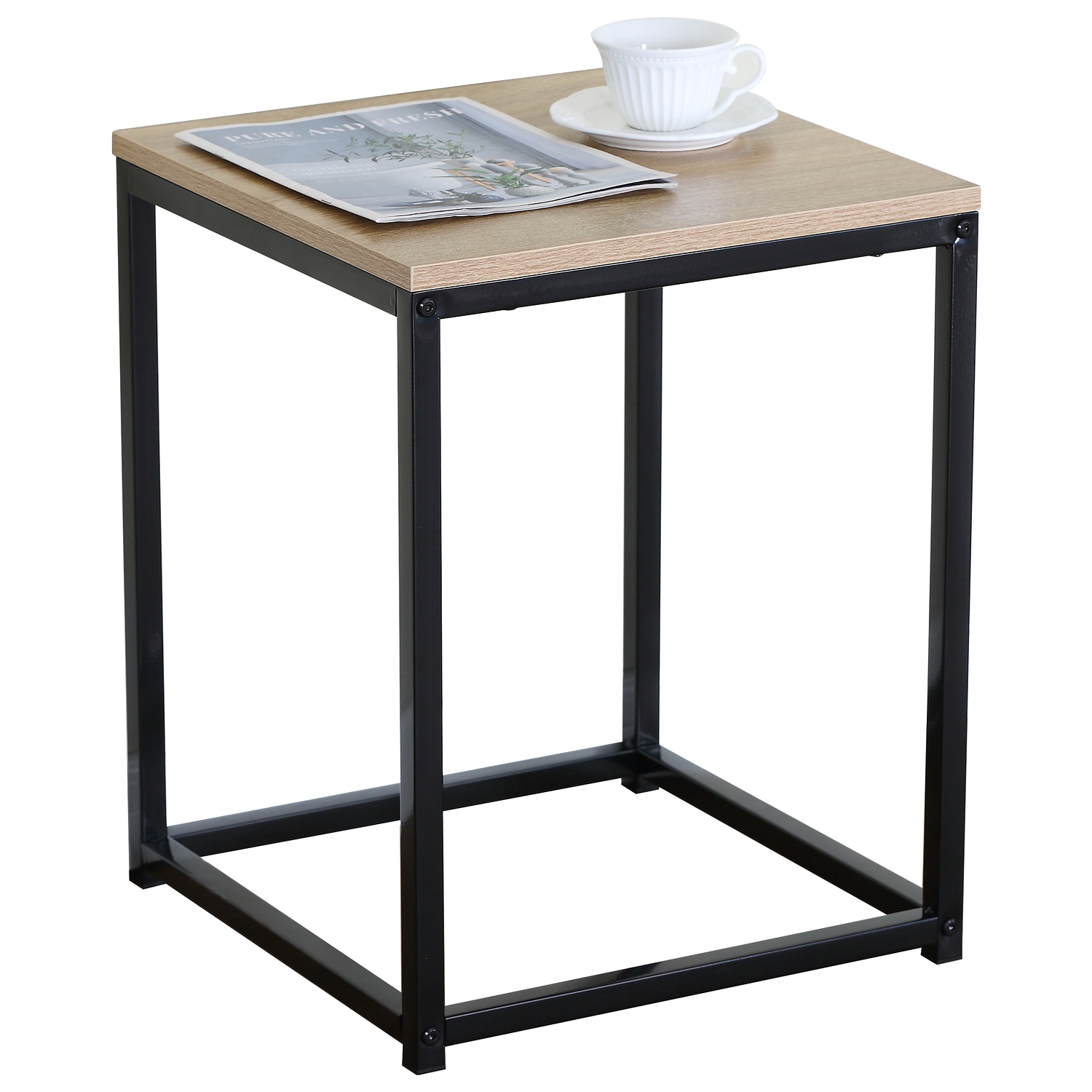 Βοηθητικό Τραπεζάκι ArteLibre QUENLEY Δρυς/Μαύρο Μοριοσανίδα/Μέταλλο 40x40x50.1cm