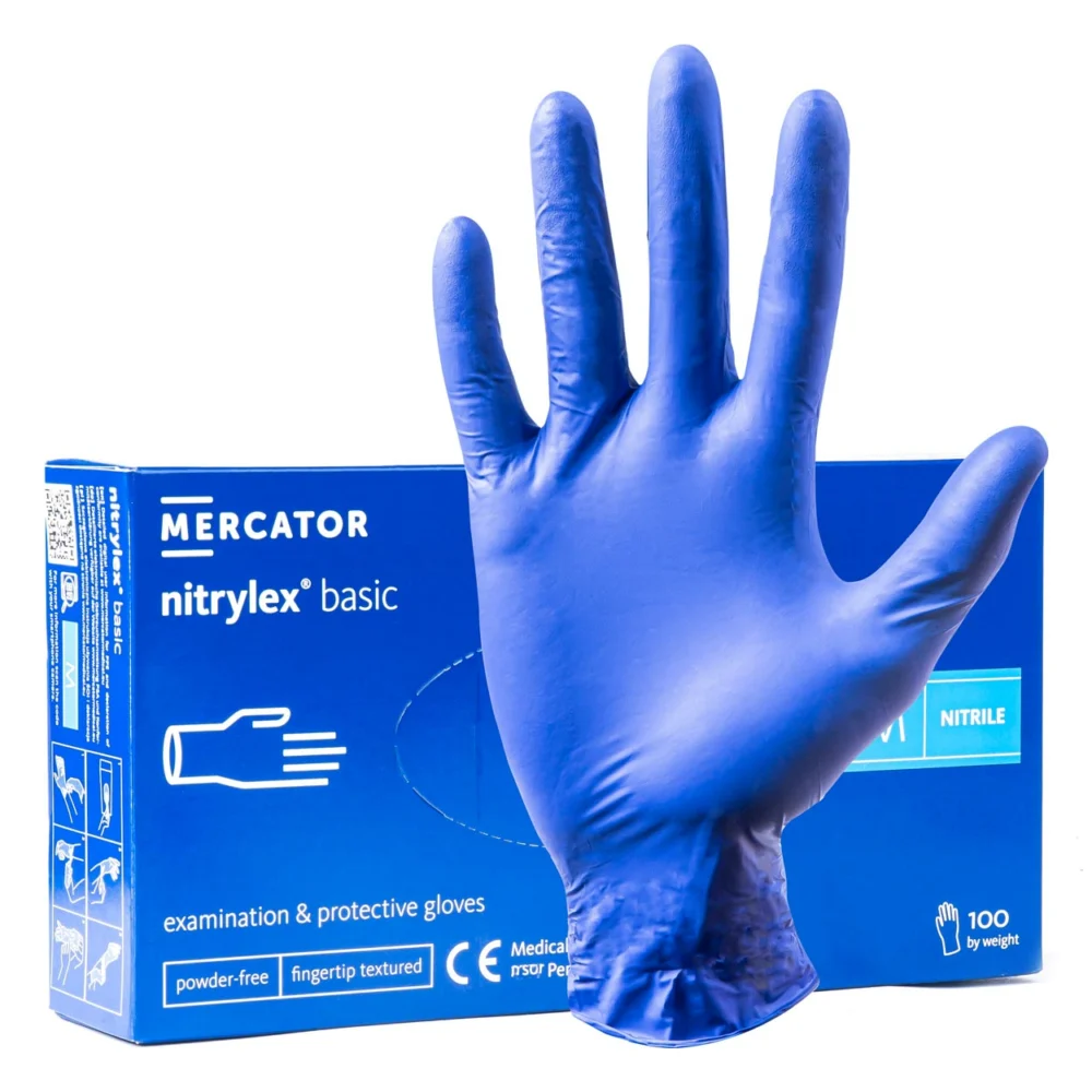 Γάντια νιτριλίου MERCATOR NITRYLEX BASIC σε μπλε χρώμα, από την εταιρεία ΑΜΙΟ, πολωνικής προέλευσης.