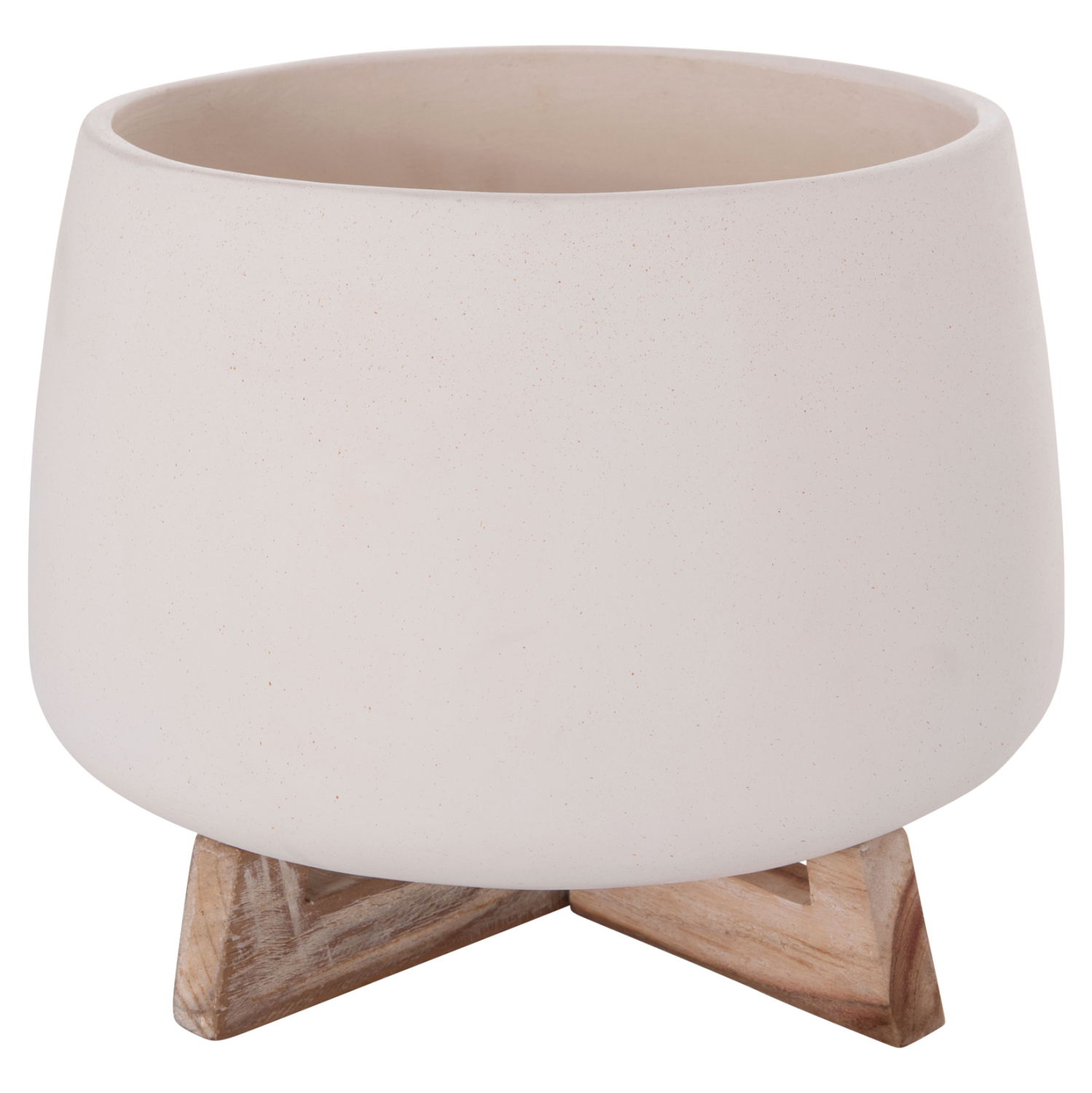 Η γλάστρα FRELLO είναι κατασκευασμένη από Fiber Cement σε ΛΕΥΚΟ χρώμα. Το ιδιαίτερο χαρακτηριστικό της είναι ότι συνοδεύεται από όμορφη και πρακτική βάση από ξύλο teak.