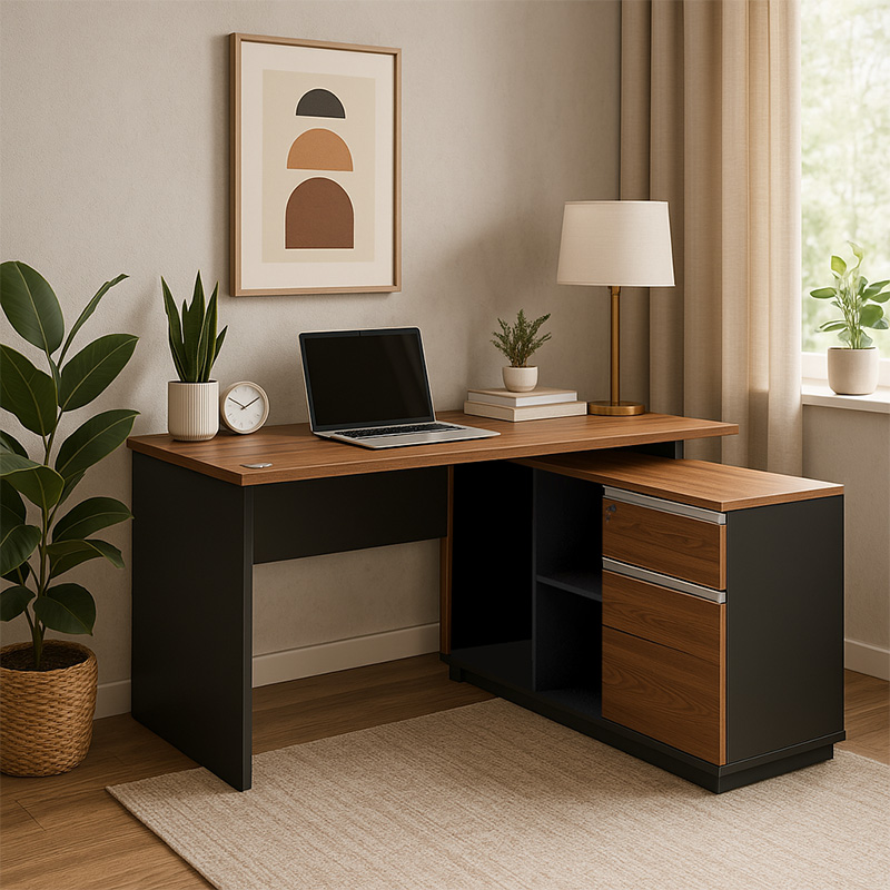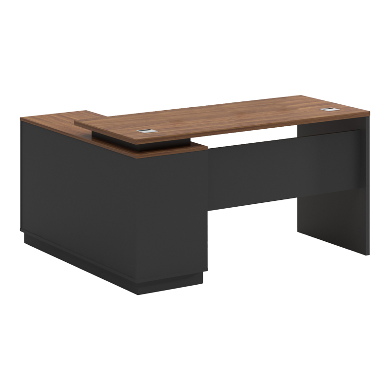Αναζητάς ένα γραφείο διεύθυνσης που να εκπέμπει κύρος, δύναμη και υπεροχή; Αν ναι τότε η σειρά Oscar είναι ότι χρειάζεσαι για να ολοκληρώσεις την εικόνα της επιχείρησης σου. Γραφείο διεύθυνσης με ενσωματωμένο γωνιακό ερμάριο (στη δεξιά πλευρά), στον εντυπωσιακό χρωματισμό του καρυδί – ανθρακί. Κατασκευασμένο από υλικά υψηλών προδιαγραφών και σύμφωνα με τις εργονομικές απαιτήσεις του σήμερα.