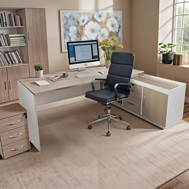 - Βοηθητικό πλαινό γραφείο το οποίο διαθέτει συρτάρια,ράφια και ντουλάπι για την αποθήκευση των χρήσιμων αντικειμένων σας αλλά και βάση για τη μονάδα του υπολογίστή σας με εξαερισμό.