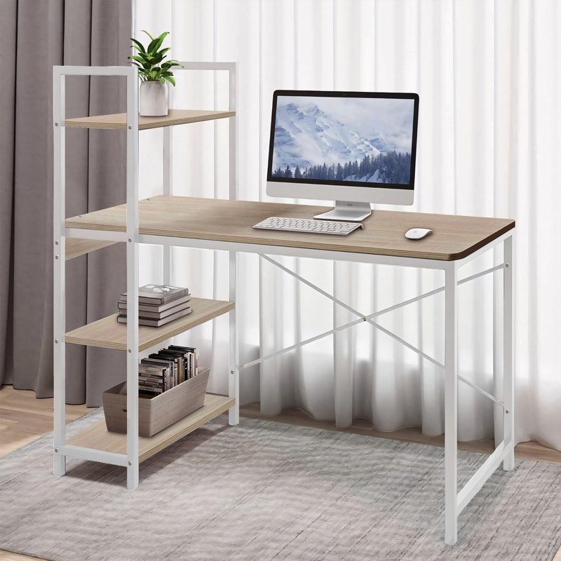 Γραφείο εργασίας Bencour pakoworld με βιβλιοθήκη mdf σε oak απόχρωση με λευκό μέταλλο 90x40x110εκ