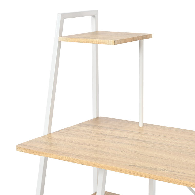 Γραφείο εργασίας Deckstor pakoworld με ραφιέρα σε oak απόχρωση με πόδι λευκό μέταλλο 102x50x117εκ