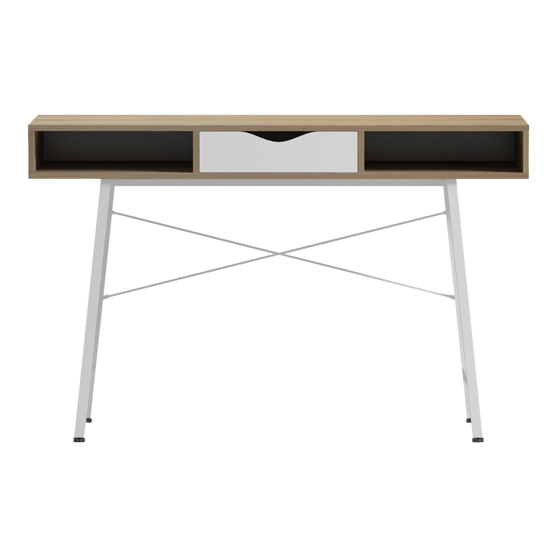 Γραφείο εργασίας Komo pakoworld σε sonoma-λευκή απόχρωση με λευκά μεταλλικά πόδια 120x48x76εκ