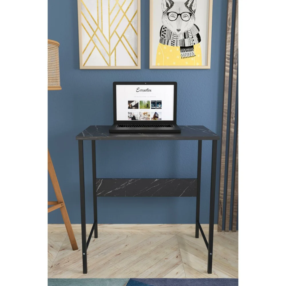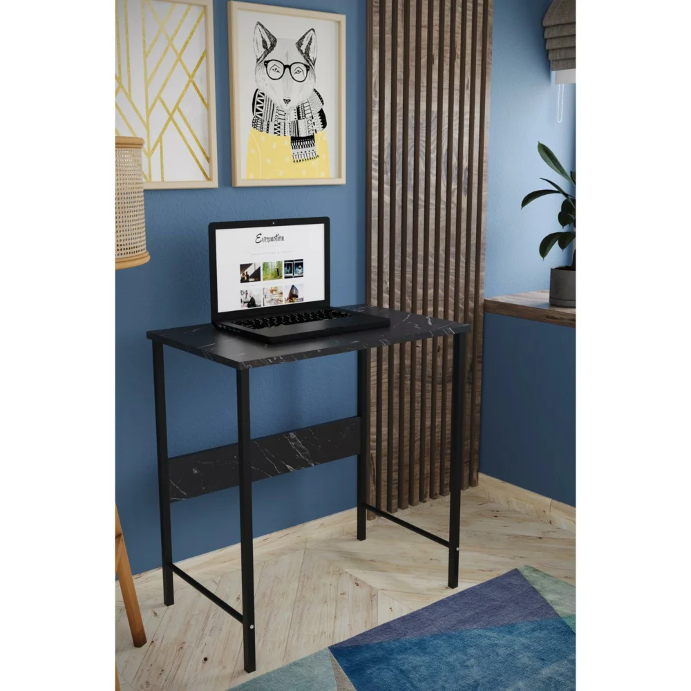 Γραφείο ArteLibre JENSKI Μαύρο/Όψη Μαρμάρου Μέταλλο/Μοριοσανίδα 74x72x45cm