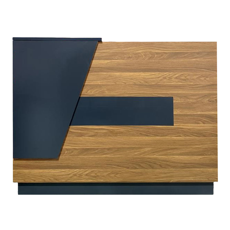 Η ρεσεψιόν Oscar αποτελεί ένα εντυπωσιακό σημείο για κάθε επαγγελματικό χώρο, συνδυάζοντας λειτουργικότητα και κομψό σχεδιασμό. Η πρόσοψή της διαθέτει μια δυναμική αντίθεση μεταξύ των ζεστών τόνων ξύλου και των σκούρων ανθρακί τμημάτων, δημιουργώντας μια αίσθηση πολυτέλειας και επαγγελματισμού.
