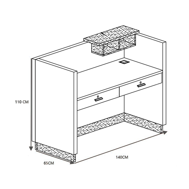 Είναι σχεδιασμένη για να προσφέρει έναν άνετο και λειτουργικό χώρο για τον υπάλληλο υποδοχής. Διαθέτει μια ευρύχωρη επιφάνεια εργασίας και πιθανώς εσωτερικούς αποθηκευτικούς χώρους για την οργάνωση εγγράφων και εξοπλισμού. Η διακριτική εσοχή στο μπροστινό μέρος παρέχει έναν άνετο χώρο για τους επισκέπτες κατά την επικοινωνία τους με τον υπάλληλο.