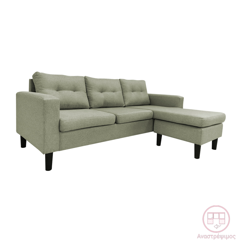 Γωνιακός καναπές αναστρέψιμος Maneli pakoworld ύφασμα γκρι-μπεζ 196×138/77×82εκ