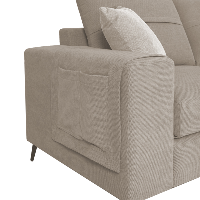 - Χρώμα καναπέ και μαξιλαριών πλάτης: Γκρι-μπεζ – Φέρει δύο διακοσμητικά μαξιλαράκια σε ανοιχτό γκρι χρώμα.