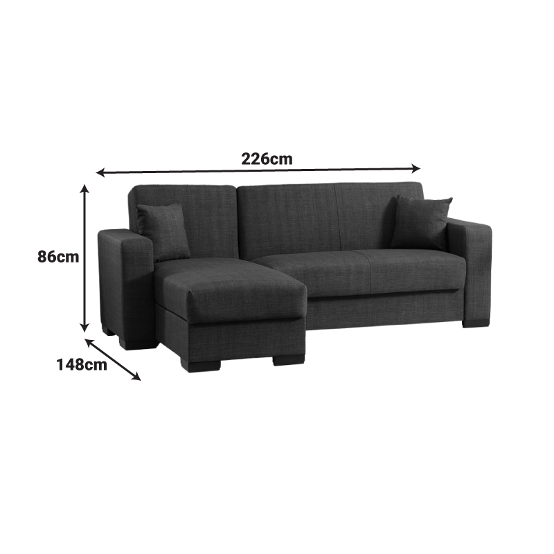 Είναι η ιδανική επιλογή για όσους αναζητούν έναν κομψό, συμπαγή και πλήρως λειτουργικό γωνιακό καναπέ-κρεβάτι που προσφέρει λύσεις αποθήκευσης και άνεσης, χωρίς συμβιβασμούς στην αισθητική.