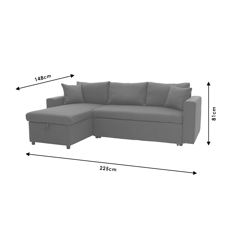 Γωνιακός καναπές-κρεβάτι αναστρέψιμος Lilian pakoworld ανθρακί 225x148x81εκ