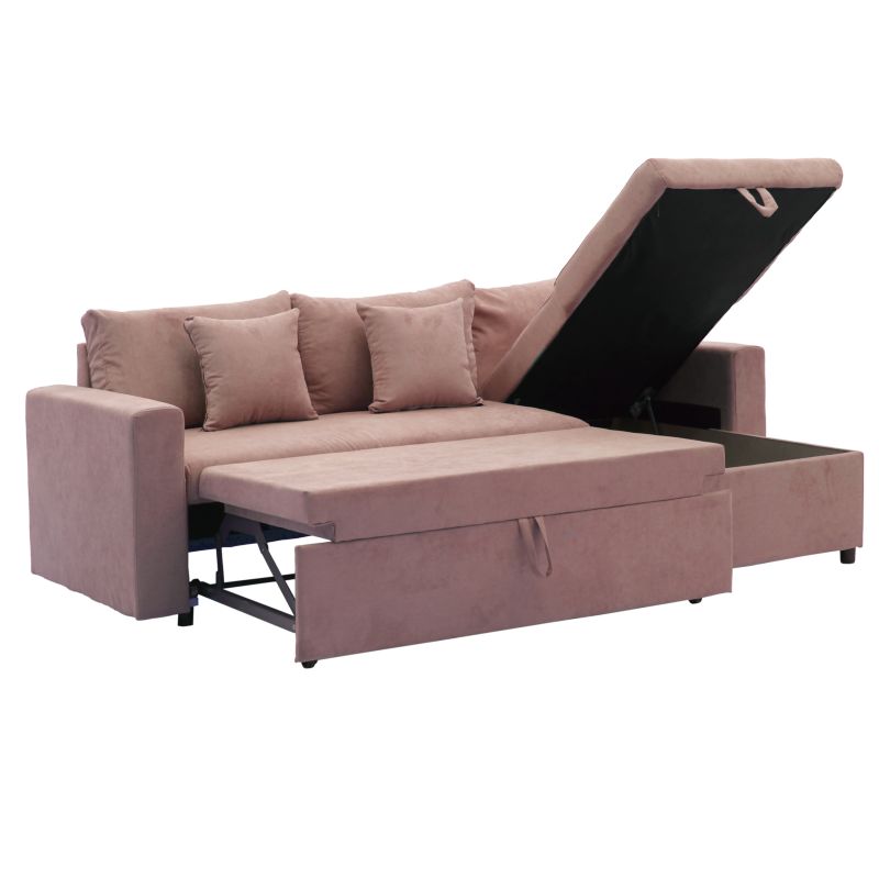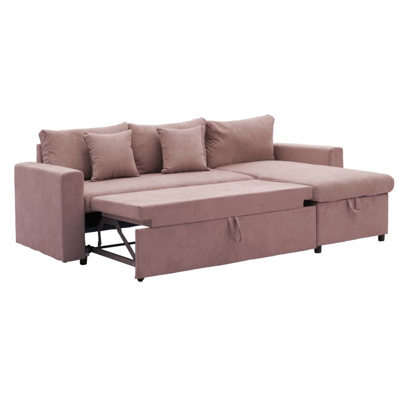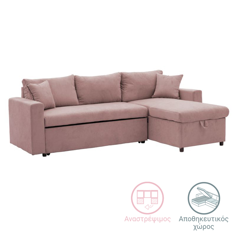 Γωνιακός καναπές-κρεβάτι αναστρέψιμος Lilian pakoworld ύφασμα σάπιο μήλο 225x148x81εκ