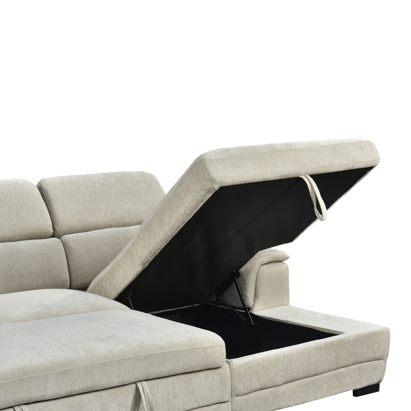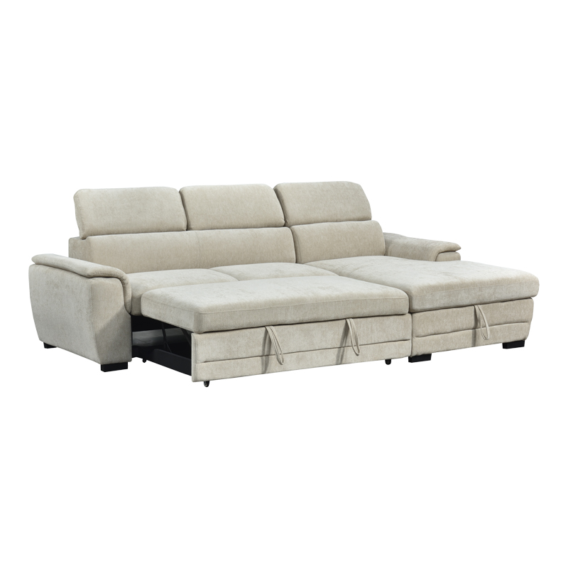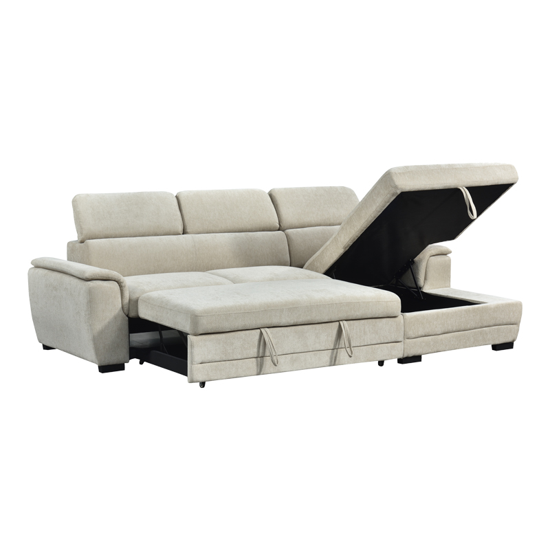 Γωνιακός καναπές-κρεβάτι αριστερή γωνία Dreamora pakoworld με αποθηκευτικό χώρο ύφασμα μπεζ 270x167x82εκ