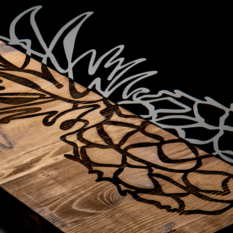 Διακοσμητικό τοίχου Pinable pakoworld ξύλο πεύκου σε φυσική απόχρωση με μαύρο μέταλλο 42x3x58εκ