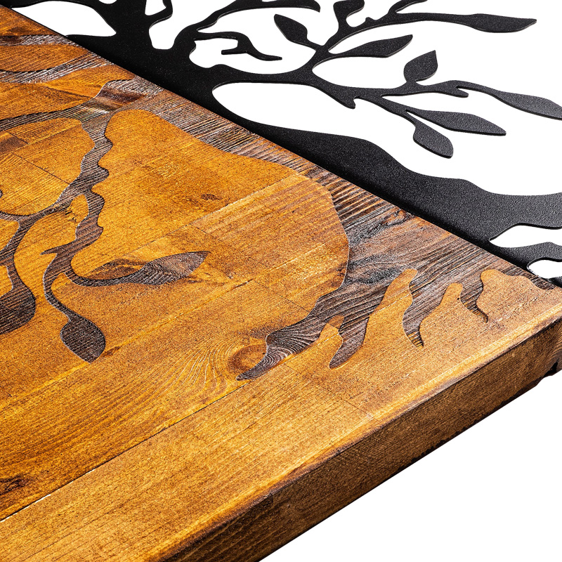 Διακοσμητικό τοίχου Trelbo pakoworld ξύλο πεύκου σε φυσική απόχρωση με μαύρο μέταλλο 58x3x58εκ