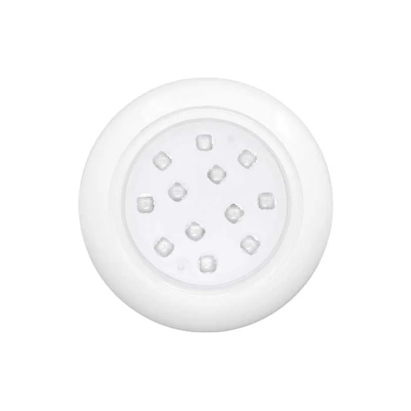 Φωτιστικό spot πισίνας/σπα LED, μέγιστης ανθεκτικότητας, από υψηλής ποιότητας πλαστικό ABS που δεν επιτρέπει καμία εισχώρηση νερού. Ισχύς: 12W. Διαστάσεις: 12.5 x 12.5 x 4 cm. Τάση: DC 12V. Waterproof: IP68.